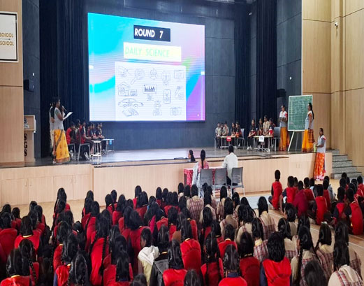 An inter-house Science Quiz Competition was conducted for the students of Classes VI to VIII in the Kandasamy Convention Hall (The Hi-tech Auditorium).