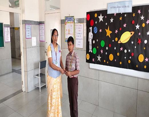 As part of the programme, a Bookmark Making Competition was conducted, where students creatively designed bookmarks inspired by futuristic themes and science fiction concepts. A book talk on Isaac Asimov’s famous work “I, Robot” helped students explore ideas related to robotics, artificial intelligence, and ethical science. Adding to the excitement, students presented a character sketch of Robbie the Robot, showcasing their understanding and interpretation of the iconic character. The event also included presentations on the biographies of renowned scientists, highlighting their contributions and inspiring young minds.