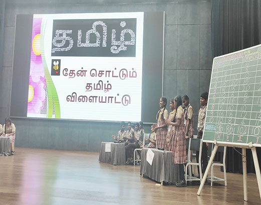 குழந்தைகளின் மொழியியல் திறன்களை வளர்க்க ஆராய 10 சுற்றுகள் கொண்ட வினாடி வினா பல்வேறு தலைப்புகளில் நடத்தப்பட்டது.