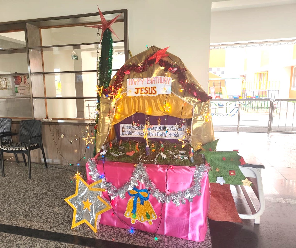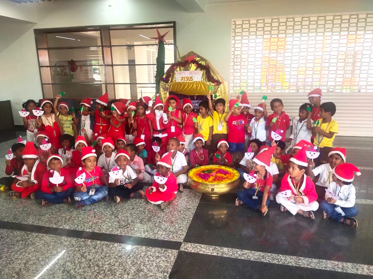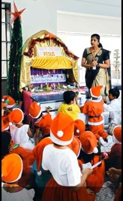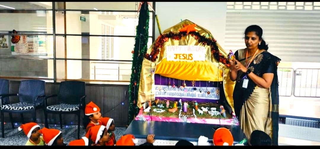 The kindergarten students at SMS, Krishnagiri enjoyed a festive Christmas celebration filled with joy. The festivities began with the children singing "Jingle Bells," followed by a captivating storytelling session about the birth of Jesus Christ, led by the Academic Coordinator.