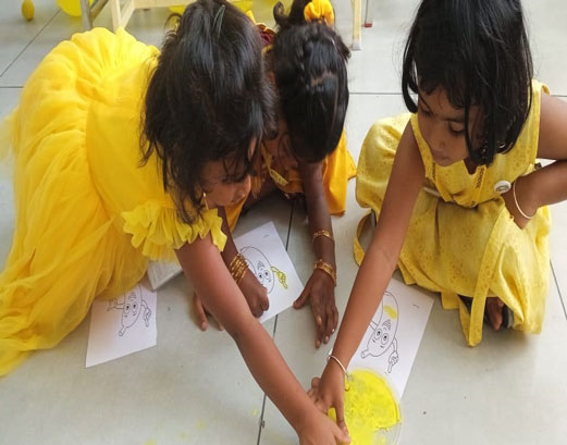 - Craft Activities with Yellow Theme: The children engaged in craft projects that featured a yellow theme, such as creating thumb imprints.