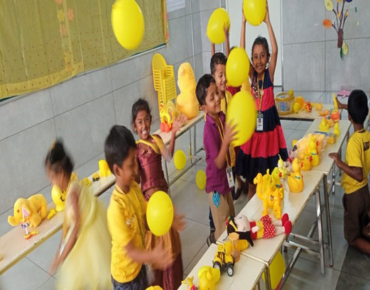 - Exhibition of Yellow Items : The kids showcased various yellow items, including toy ducks, pencils, and blocks, in the classroom.