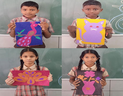 Activity 1 - Mosaic Masters-Art and Drawing club Class: 8 Description Both T-shirt and face painting activities foster creativity and self-expression that involve different materials and preparation processes for safety and durability. Here for T-shirt painting children used fabric paints, while face painting uses water-based, skin-safe paints for temporary designs. In essence, art makes children more imaginative, empathetic, and well-rounded individuals, preparing them for academic success and a fulfilled life. Craft work provides an outlet for emotional expression and can improve social skills through group projects.